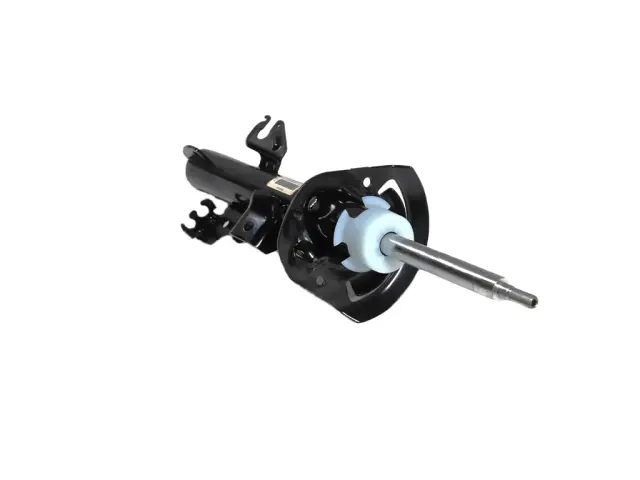 Factory strut specified to control ride quality, damping, and suspension geometry for the front right corner.
